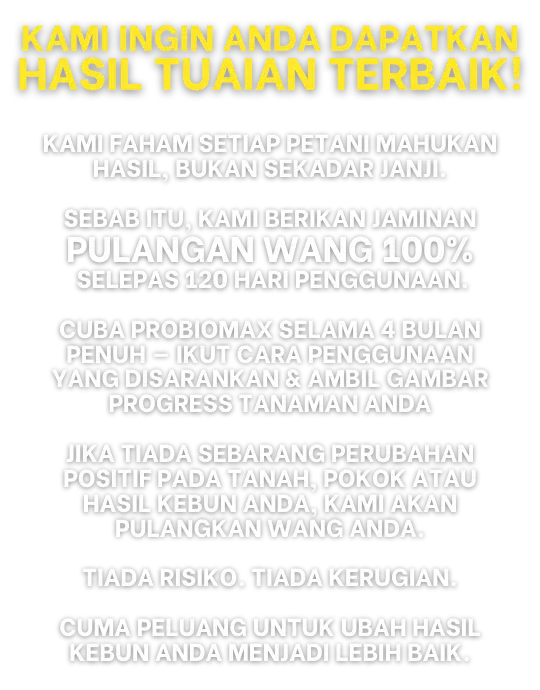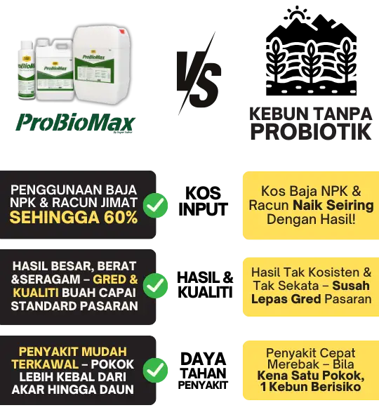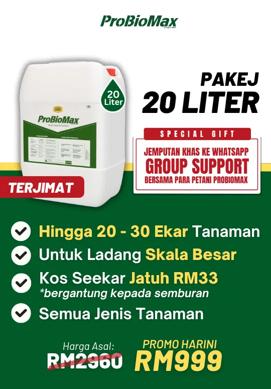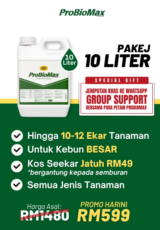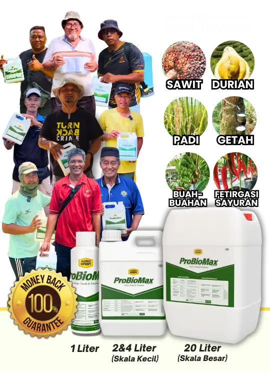 Probiomax memang sesuai untuk pesawah padi, pekebun sayur, peladang sawit, dan penanam buah premium macam durian.