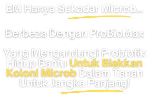 Probiomax ni baja organik premium. Ada probiotik (bakteria baik) dan amino asid untuk pulihkan tanah, suburkan tanaman, dan bagi hasil buah yang berkualiti tinggi