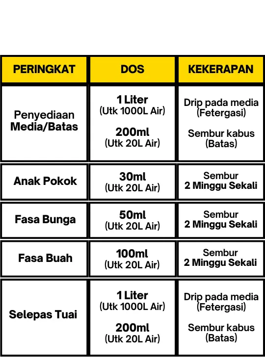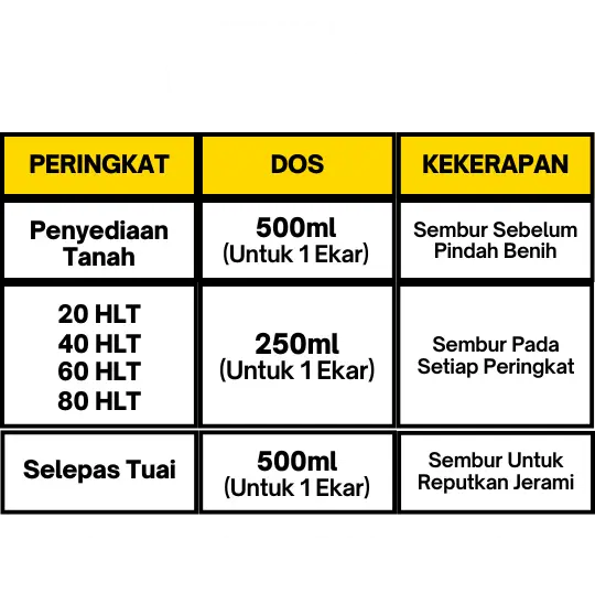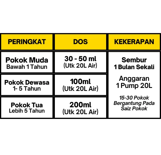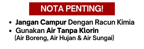 Mudah je. Campurkan dengan air ikut sukatan, lepas tu sembur atau siram ke tanah dan tanaman ikut jadual.