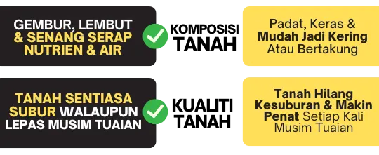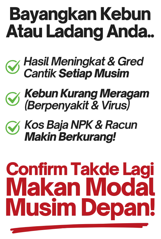 Biasanya dalam 1-2 minggu dah nampak kesan awal: tanah makin elok, pH lebih stabil, dan pokok makin subur. Penyakit tanah pun mula kurang.